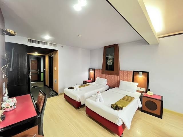 Ok ok .its famous hotel ..big n fancy . Aircond strong Bathroom only have tub.. (not so clean) Most most important for those plan staying there .. check your towels and item in hotel once check in.. cause if they found your towel got any stain ..they charge you.. towel got yellow stain(which we totally never use their towel) charges 300 baht. The hallway all got leakage , Kinda scaryy... Lift close fast . There is poolbut so deep 6ft..got green mold) not suitable kids unless knows swimming (still lookscreepy) Near to lee garden and all massage places . Breakfast buffet ok ok ...